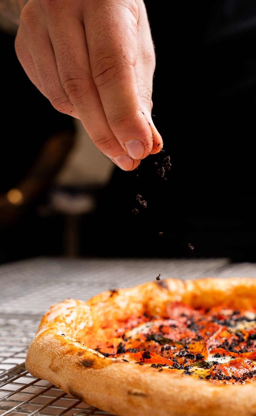 Estetica e gusto in un impasto dal carattere unico, per un’esperienza sorprendente. Il colore e la consistenza del nero di seppia trasformano la pizza in una creazione scenografica ed elegante, senza rinunciare alla leggerezza.