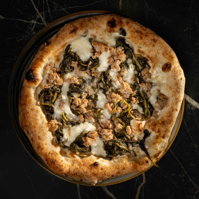 friarielli saltati, provola affumicata, salsiccia punta di coltello. | €13,00